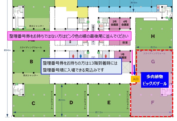 (整理券配布の10時以降にご来場の方は「13階の整理券を